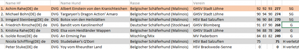der Prüfungsleitung und der technischen Leitung von Uwe Pottharst (LRO LV Ravensberg-Lippe) statt. Als Leistungsrichter fungierten am Samstag für die Fährtenarbeit Uwe Pottharst (LRO LV Ravensberg-Lippe) und Am Sonntag in den abteilungen B und C Uwe Pottharst (LRO LV Ravensberg-Lippe)