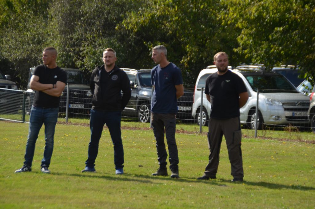zur Verfügung. Als Helfer absolvierte den Teil 1 der Abteilung C Harry Berg (2. v. l.) und den Teil 2 Dimosdennis Kotikas (1. v. l.), Ersatzhelfer Stefan Bobe (2. v. r.)